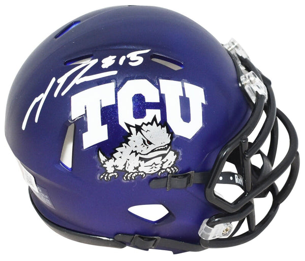 MAX DUGGAN AUTOGRAPHED TCU HORNED FROGS PURPLE SPEED MINI HELMET BECKETT