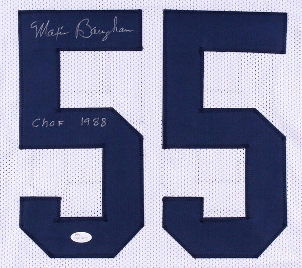 Custom on-field style jersey. Everything is sewn on, size XL. Hand-signed in silver paint pen by Maxie Baughan. The autograph includes an official James Spence Authentication (JSA) hologram and matching COA for authenticity purposes. The signing of this item was witnessed by JSA.Authentication: JSA COA