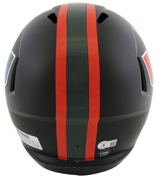 This Autographed 2017 Alternate Black Full Size Speed Rep Helmet has been Personally Signed by Michael Irvin of the Miami Hurricanes. This item is 100% Authentic to include a hologram by Beckett Authentication Services. This item will come with the new Beckett Authentication hologram that has a scannable QR code rather than the traditional COA. If you would like to have a COA, you are welcome to reach out to Beckett for a printed certification once you receive your item. This is a BAS Witnessed Protection Program item which means a Beckett Authentication Service representative was present when this item was being signed. This is a stock item. We conducted an autograph signing with Michael Irvin and we have several of these available. The one you will receive will be of equal quality to the one pictured. This item can be verified through BAS Witnessed.