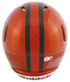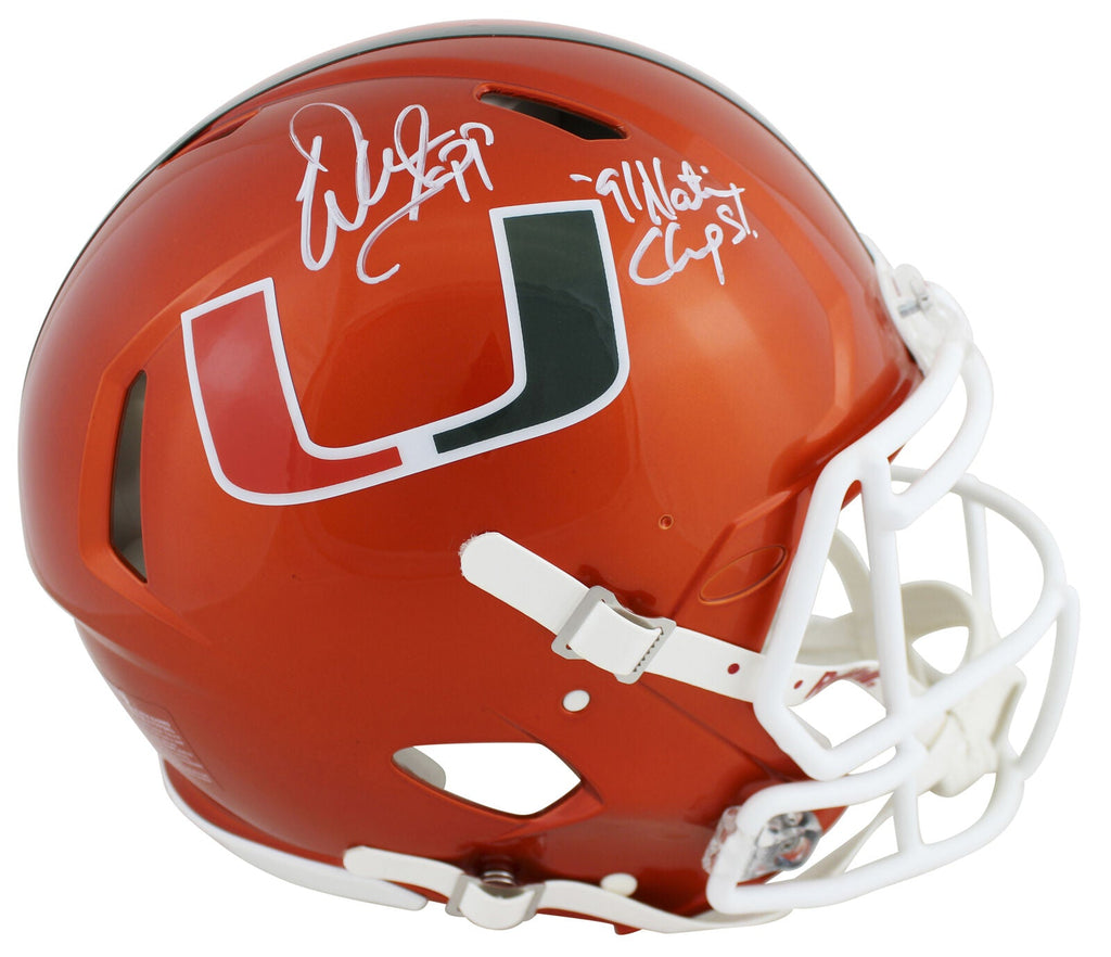 This Autographed Flash Full Size Speed Proline Helmet with the inscription of "91 National Champs" has been Personally Signed by Warren Sapp of the Miami Hurricanes. This item is 100% Authentic to include a hologram by Beckett Authentication Services. This item will come with the new Beckett Authentication hologram that has a scannable QR code rather than the traditional COA. If you would like to have a COA, you are welcome to reach out to Beckett for a printed certification once you receive your item. This is a BAS Witnessed Protection Program item which means a Beckett Authentication Service representative was present when this item was being signed. We conducted an autograph signing with Warren Sapp where multiples of the same item were signed. While the photographs are representative of this item, the size, placement and strength of the signature may vary. Each item is hand signed, therefore, each autograph is unique. This item can be verified through BAS Witnessed.