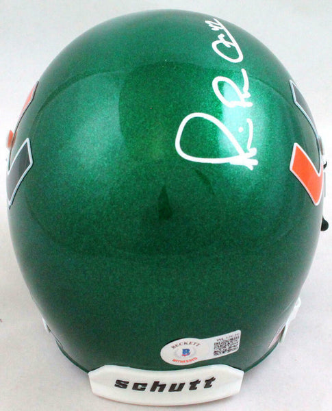 Michael Irvin Signed Miami Hurricanes Green Schutt Mini Helmet-Beckett W Hologram *White This is a Hand Autographed of Michael Irvin of the Miami Hurricanes on a Schutt Football Mini Helmet. This item has a Beckett Witness Authentication, which comes with a Beckett #'ed hologram and a generic Beckett certificate of authenticity. You can view this item on the Beckett website and it shows when and where the item was signed. It was signed either at a public autograph appearance or a private signing. This is a stock photo of the item. Although you may not receive this exact item, the item you receive is virtually identical and brand new in great shape.