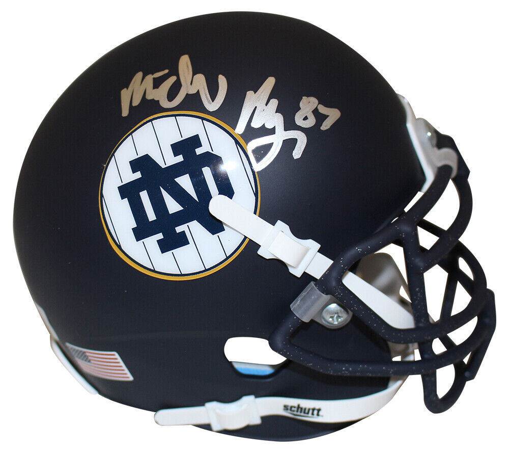 Michael Mayer Signed Notre Dame Fighting Irish Schutt Mini Helmet BAS 38781 The number in the listing title is just an inventory sku for our records and is not the authentication number. The item pictured is a stock photo unless otherwise noted. This is a Notre Dame Fighting Irish Schutt mini helmet that was personally autographed by Michael Mayer. Includes a certificate of authenticity from Beckett Authentication Services (BAS) and Denver Autographs.
