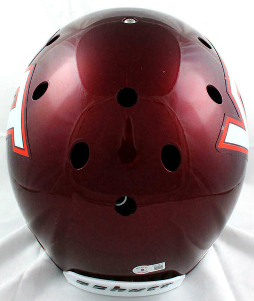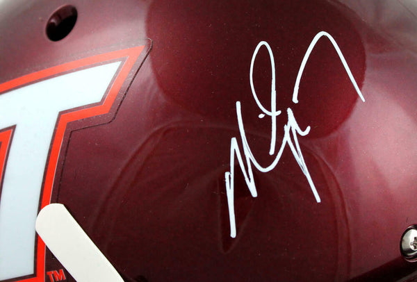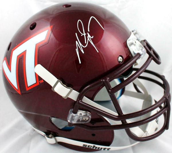 Michael Vick Autographed Virginia Tech F/S Schutt Authentic Helmet-Beckett W Hologram *White This is the hand autograph of Michael Vick of Virginia Tech on a Schutt Football Full Size Authentic Helmet. This item has a Beckett Witnessed Authentication, which comes with a Beckett numbered sticker hologram and a QR code for verification. You can view this item on the Beckett website. It was signed either at a public autograph appearance or a private signing. This is a stock photo of the item. Although you may not receive this exact item, the item you receive is virtually identical and brand new in great shape.