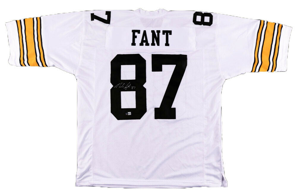 Noah Fant, former All-American tight end for the Iowa Hawkeyes, has hand signed this white custom jersey at a private signing. Jersey is size XL and all letters/numbers are sewn-on. This item is authenticated by Beckett Authentication Services and was signed in the presence of one of their representatives. Their tamper-evident hologram featuring a QR code and serial number is on the item. The authenticity can be verified online by entering the serial number or scanning the QR code.Item pictured may not be the exact item you will receive. It will be similar quality, and we guarantee your satisfaction.