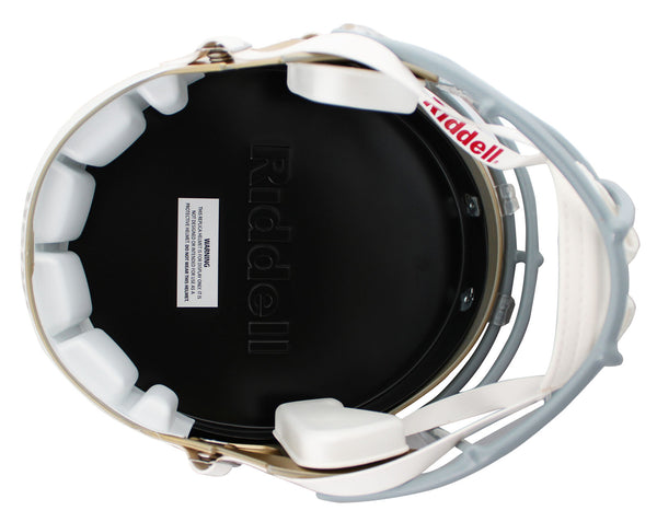 This Autographed Full Size Speed Rep Helmet with the inscription of "Go Irish!" has been Personally Signed by Joe Theismann of the Notre Dame Fighting Irish. This item is 100% Authentic to include a hologram by Beckett Authentication Services. This item will come with an affixed Beckett Authentication Services (BAS) authentication sticker, which includes a scannable QR code to verify authenticity. Please note that Beckett no longer provides serial-numbered COA cards, and the attached BAS sticker will serve as the complete authentication for this item. This is a BAS Witnessed Protection Program item which means a Beckett Authentication Service representative was present when this item was being signed. We conducted an autograph signing with Joe Theismann where multiples of the same item were signed. While the photographs are representative of this item, the size, placement and strength of the signature may vary. Each item is hand signed, therefore, each autograph is unique. This item can be verified through BAS Witnessed.