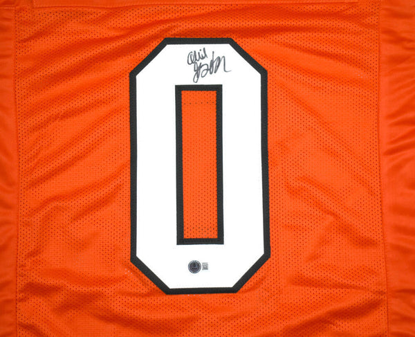 Ollie Gordon II Autographed Orange College Style Jersey - Beckett W Hologram *Black THIS IS NOT AN NCAA JERSEY. THIS HAS NO TAGS, NO LOGOS, NO EMBLEMS. This is a Hand Autographed Jersey of Ollie Gordon II. This is Custom Made (Non Name Brand) Authentic Style (Stitched Letters and Numbers). This item has a Beckett Witnessed Authentication, which Comes with a Beckett #ed hologram and a QR code for verification. It was signed either at a public autograph appearance or a Private Signing. This is a stock photo of the item. Although you may not receive this exact item, the item you receive is virtually identical and brand new in great shape. Jersey size is XL.
