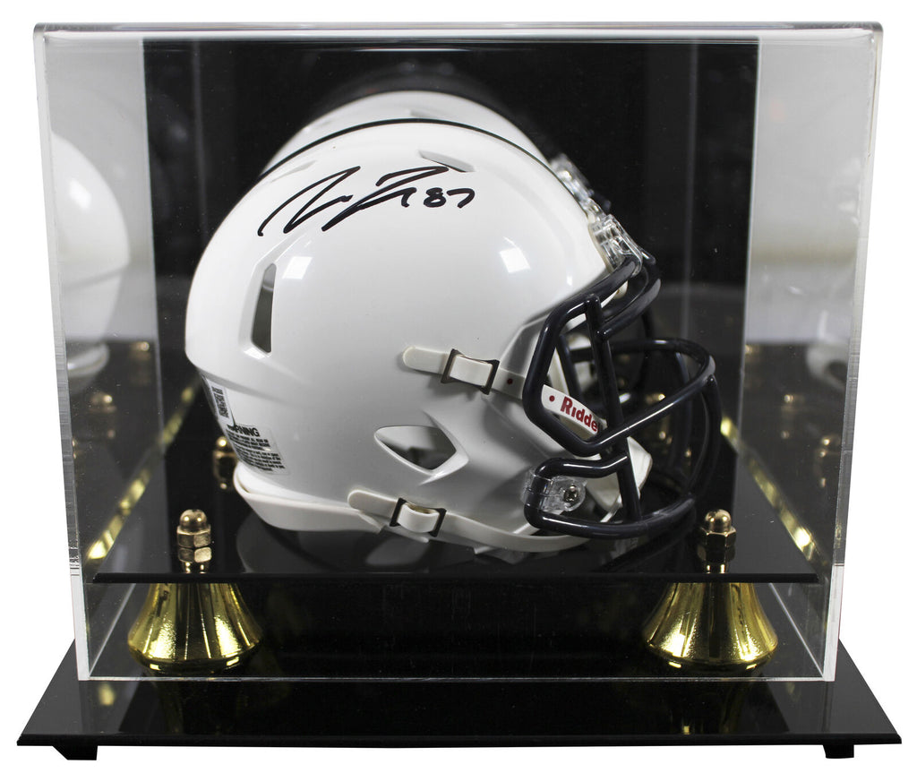 This Autographed Speed Mini Helmet W/ Uv Mirrored Back Acrylic Display Case has been Personally Signed by Pat Freiermuth of the Penn State Nitnay Lions. This item is 100% Authentic to include a hologram by Beckett Authentication Services. This item will come with an affixed Beckett Authentication Services (BAS) authentication sticker, which includes a scannable QR code to verify authenticity. Please note that Beckett no longer provides serial-numbered COA cards, and the attached BAS sticker will serve as the complete authentication for this item. This is a BAS Witnessed Protection Program item which means a Beckett Authentication Service representative was present when this item was being signed. We conducted an autograph signing with Pat Freiermuth where multiples of the same item were signed. While the photographs are representative of this item, the size, placement and strength of the signature may vary. Each item is hand signed, therefore, each autograph is unique. This item can be verified through BAS Witnessed.