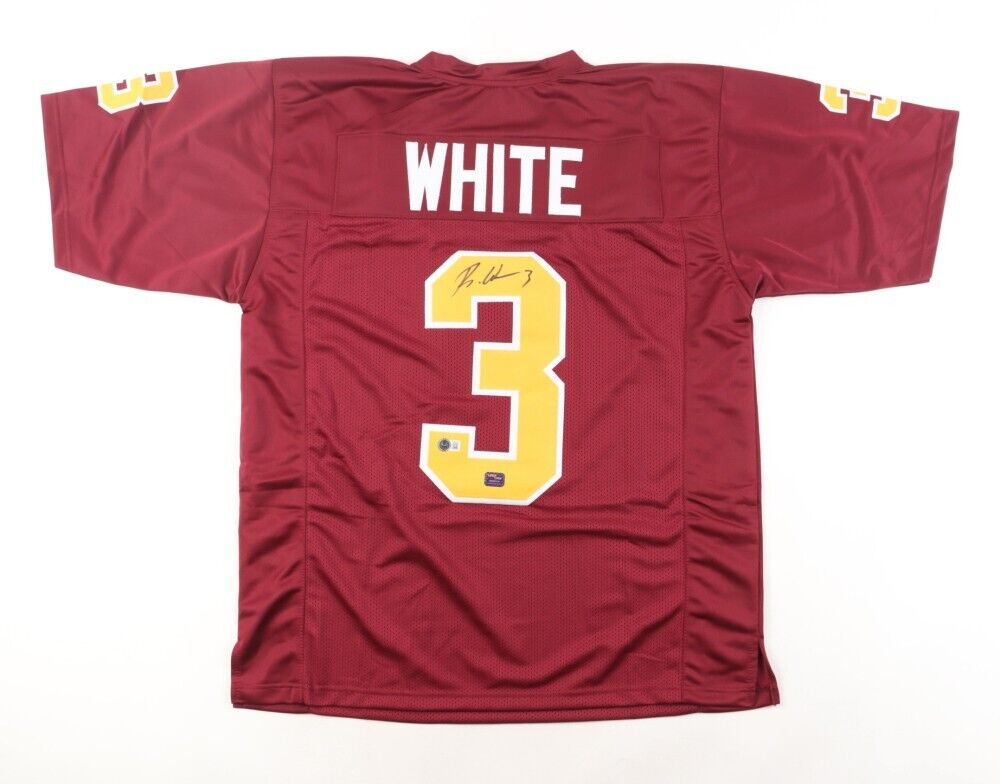 Custom on-field style jersey. Everything sewn on, size XL. Hand-signed by Rachaad White.The autograph includes an official Beckett Authentication Services serially numbered hologram and QR Code Card for authenticity purposes. The signing of this item was witnessed by Beckett.Authentication: Beckett Hologram with QR Code Card