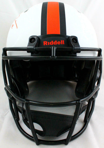 Ray Lewis Autographed Miami Hurricanes F/S Riddell Lunar Speed Authentic Helmet-Beckett W Hologram *Orange This is a hand autograph of Ray Lewis of the University of Miami Hurricanes on a Riddell Football Full Size Lunar Speed Authentic Helmet. This item has a Beckett Authentication, which comes with a Beckett numbered sticker hologram and a QR code for verification. You can view this item on the Beckett Authentication website, it shows when and where the item was signed. It was signed either at a public autograph appearance or a private signing. This is a stock photo of the item. Although you may not receive this exact item, the item you receive is virtually identical and brand new in great shape.