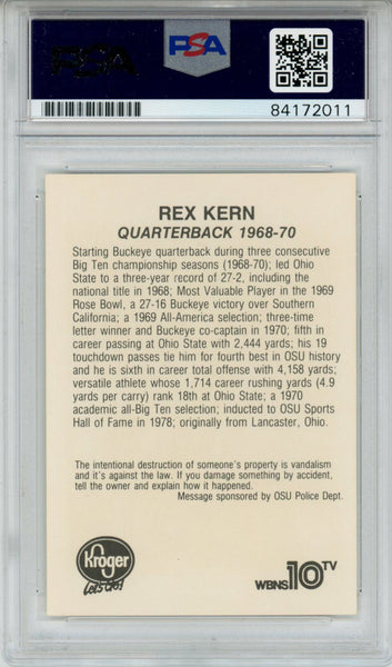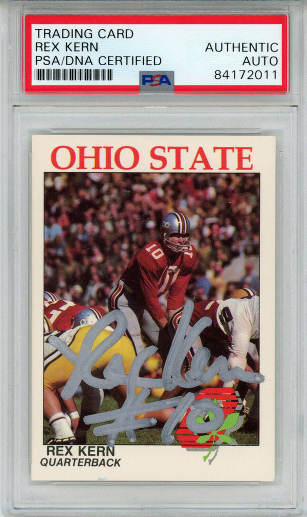 Rex Kern Autographed/Signed 1988 Kroger Trading Card PSA Slab 43773 The number in the listing title is just an inventory sku for our records and is not the authentication number. This is the exact item that you will receive so please see pictures for condition. This is a trading card that was personally autographed by Rex Kern. This has been professionally slabbed by Professional Authentication Services (PSA) and includes a certificate of authenticity from Denver Autographs.