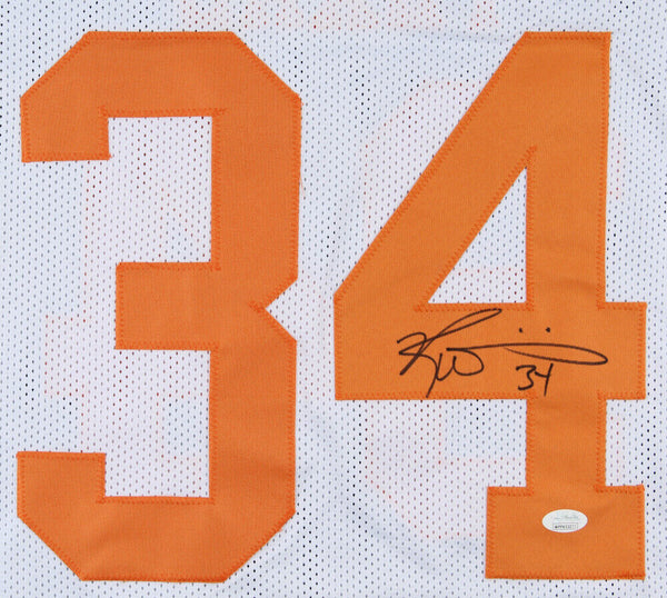 Custom on-field style jersey. Everything is sewn on, size XL and has been hand-signed in black felt-tip pen by Ricky Williams. The lot / autograph(s) includes an official James Spence Authentication (JSA) hologram and matching COA for authenticity purposes.Authentication: JSA COA