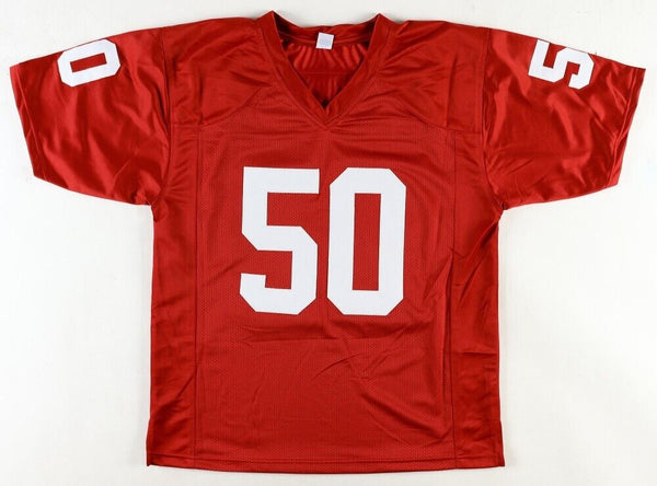 Custom on-field style jersey. Everything sewn on, size XL. Hand-signed and inscribed by Ron Simmons. The autograph includes an official Beckett Authentication Services serially numbered hologram and QR Code Card for authenticity purposes. The signing of this item was witnessed by Beckett.Authentication: Beckett Hologram & QR Code card