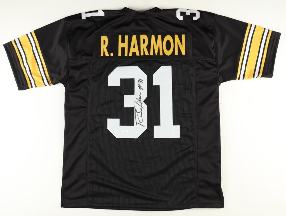 Custom on-field style jersey. Everything is sewn on, size XL. Hand-signed by Ronnie Harmon.The autograph includes an official James Spence Authentication (JSA) hologram and matching COA for authenticity purposes.Authentication: JSA COA Shop our ebay store / Friendly Confines Collectibles for thousands of different autographed jerseys.