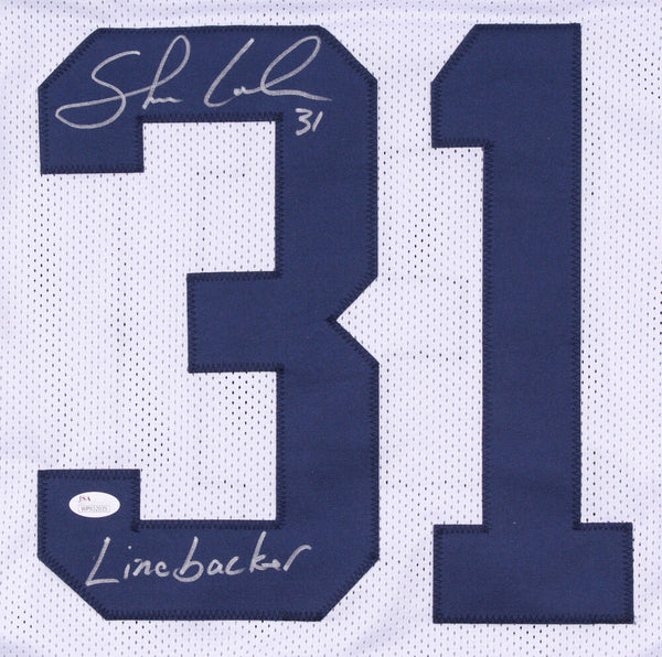 Custom on-field style jersey. Everything sewn on, size XL. Hand-signed and inscribed in silver paint pen by Shane Conlan. The lot / autograph(s) includes an official James Spence Authentication (JSA) hologram for authenticity purposes.Authentication: JSA Hologram