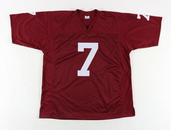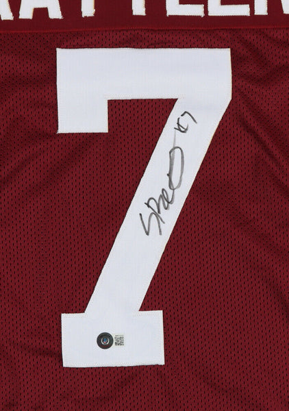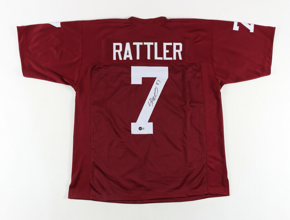 Custom on-field style jersey. Everything is sewn on, size XL. Hand-signed by Spencer Rattler.The lot / autograph(s) includes an official Beckett Authentication Services serially-numbered hologram for authenticity purposes. Item was witnessed by Beckett.Authentication: Beckett Hologram