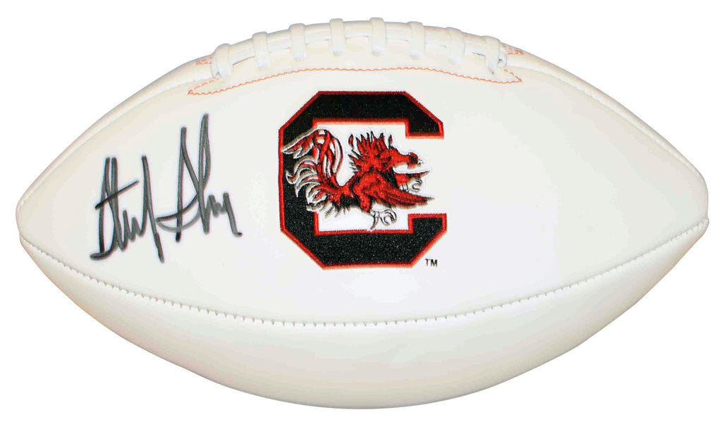 Sterling Sharpe, former All-American wide receiver for the Gamecocks, has hand signed this South Carolina white panel logo football at a private signing. This item comes with a certificate of authenticity (COA) from Beckett Authentication Services and was signed in the presence of one of their representatives. You will receive a serial-numbered COA along with a matching serial-numbered sticker on the ball. The authenticity can be verified online by entering the serial number.Item pictured may not be the exact item you will receive. It will be similar quality, and we guarantee your satisfaction.