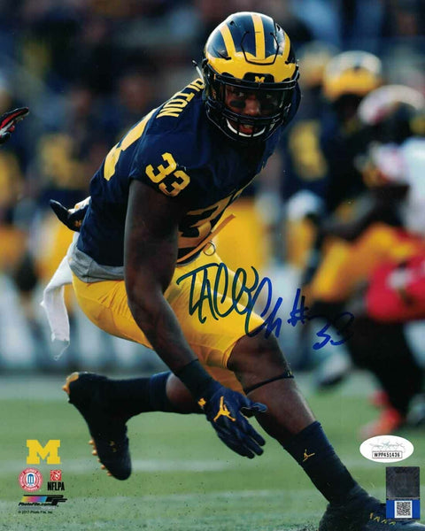 Taco Charlton Autographed/Signed Michigan Wolverines 8x10 Photo JSA PF 23995 This is an officially licensed 8x10 photo that was personally autographed by Taco Charlton. This photo includes a certificate of authenticity from James Spence Authentication (JSA) and Denver Autographs.
