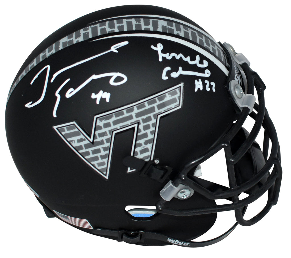 TERRELL & TREMAINE EDMUNDS SIGNED VIRGINIA TECH HOKIES BLACK MINI HELMET BECKETT