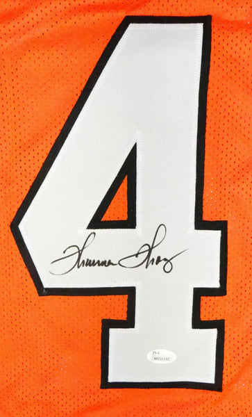 This IS NOT AN NCAA JERSEY. This HAS NO TAGS, NO LOGOS, NO EMBLEMS. This is a hand autographed Jersey of Thurman Thomas. This is Custom Made (Non Name Brand) Authentic Style (Stitched Letters and Numbers). This item has a James Spence Authentication, which comes with a JSA numbered sticker and a JSA COA. It was signed either at a public autograph appearance or a Private Signing. This is a stock photo of the item. Although you may not receive this exact item, the item you receive is virtually identical and brand new in great shape. This IS NOT AN NCAA JERSEY. This HAS NO TAGS, NO LOGOS, NO EMBLEMS. This is a hand autographed Jersey of Thurman Thomas. This is Custom Made (Non Name Brand) Authentic Style (Stitched Letters and Numbers). This item has a James Spence Authentication, which comes with a JSA numbered sticker and a JSA COA. It was signed either at a public autograph appearance or a Private Signing. This is a stock photo of the item. Although you may not receive this exact item, the item you receive is virtually identical and brand new in great shape.