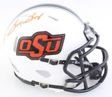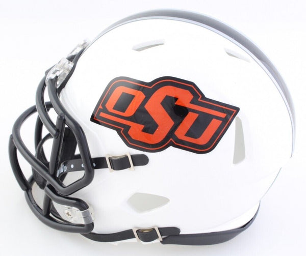 Riddell Oklahoma State Cowboys speed mini helmet has been hand-signed by Thurman Thomas (HOF).The lot / autograph(s) includes an official Beckett Authentication Services serially numbered hologram for authenticity purposes. The signing of this item was witnessed by Beckett.Authentication: Beckett Hologram