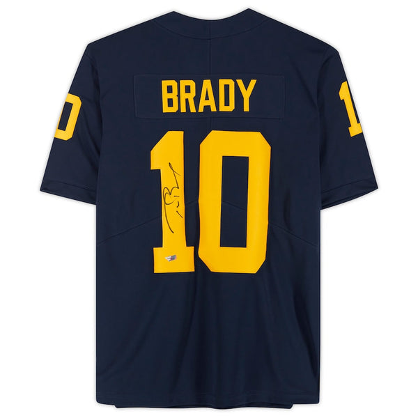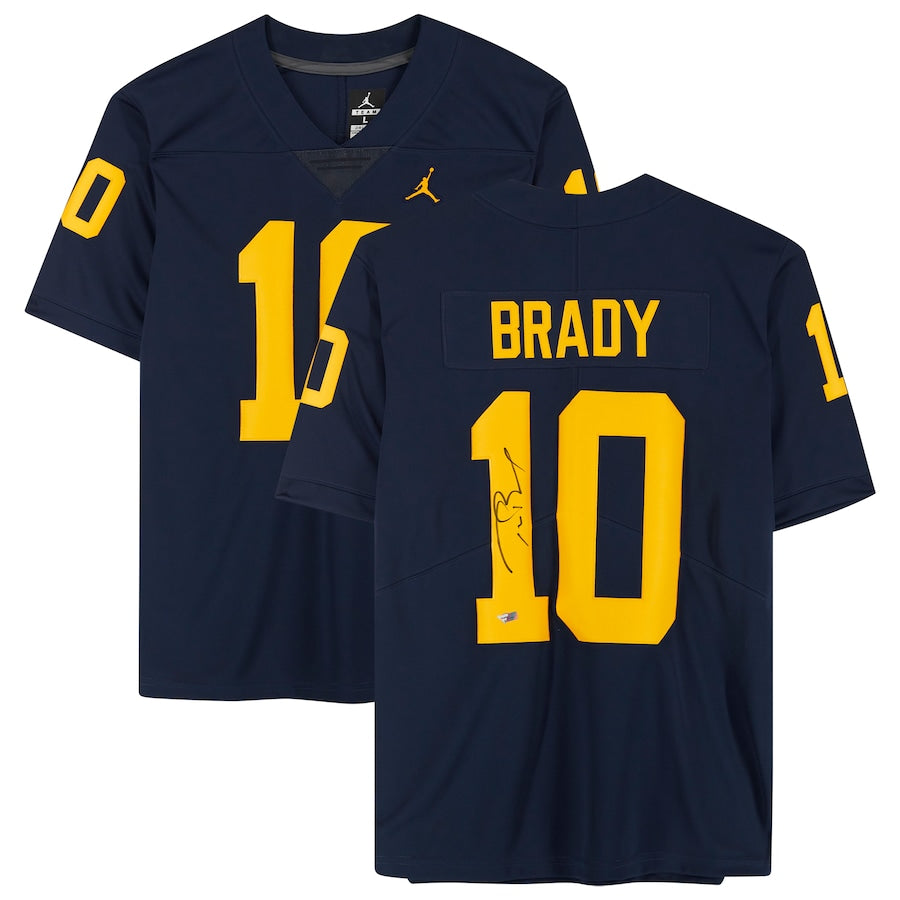 This Nike Limited Jersey is autographed by Michigan Wolverines legendary quarterback Tom Brady. Also known as the "GOAT," Brady has had numerous achievements in his illustrious NFL career such as 15 Pro Bowl Selections, three MVP awards and a whopping seven Super Bowl championships. The Hall of Fame-bound signal-caller also holds the NFL record for most passing yards and passing touchdowns. This iconic piece of memorabilia showcases Tom Brady's iconic signature to provide the ultimate collector's item.