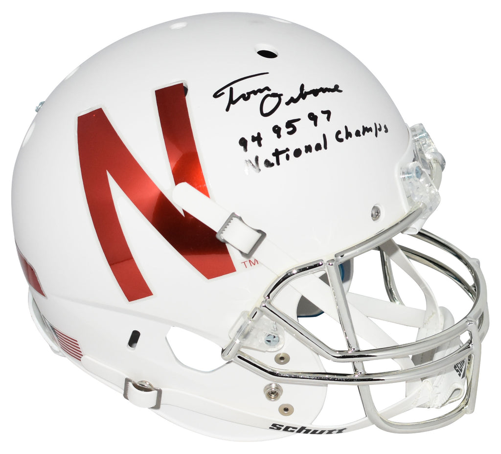 TOM OSBORNE SIGNED NEBRASKA CORNHUSKERS WHITE FULL SIZE HELMET W/ 3X CHAMPS
