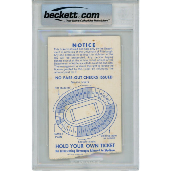 The number in the listing title is just an inventory sku for our records and is not the authentication number. The item pictured is a stock photo unless otherwise noted. This is a Pittsburgh Panthers 11/15/1975 Slabbed Ticket Stub that was personally autographed by Tony Dorsett includes "303 yards" inscription. Includes a certificate of authenticity from Beckett Authentication Services (BAS) and Denver Autographs.FREE SHIPPING within the USA on orders over $10!