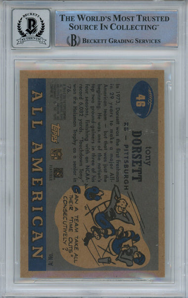 Tony Dorsett Signed 2005 Topps All American Trading Card Beckett 10 Slab 38637 The number in the listing title is just an inventory sku for our records and is not the authentication number. The item pictured is a stock photo unless otherwise noted. This is a trading card that was personally autographed by Tony Dorsett. This has been professionally slabbed by Beckett Authentication Services (BAS) and includes a certificate of authenticity from Denver Autographs.