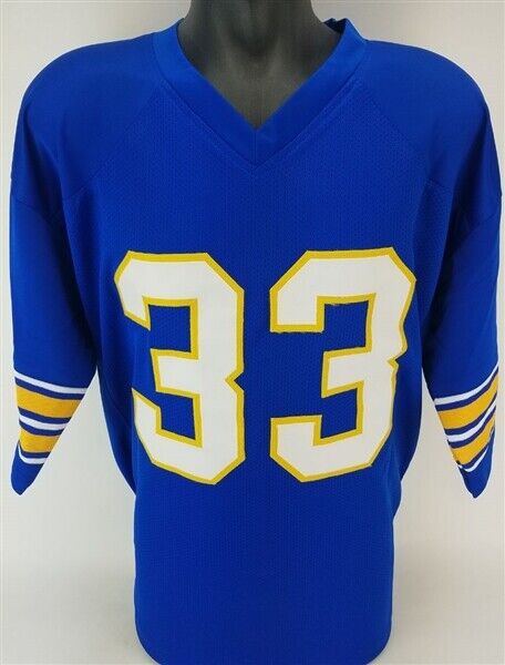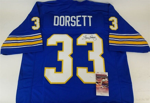 Custom on field style jersey. Everything sewn on. Jersey has been hand-signed in black felt-tip pen by Tony Dorsett (Dallas Cowboys, HOF). The autograph includes an official James Spence Authentication (JSA) hologram and matching COA for authenticity purposes. The signing of this item was witnessed by JSA.Authentication: JSA COA