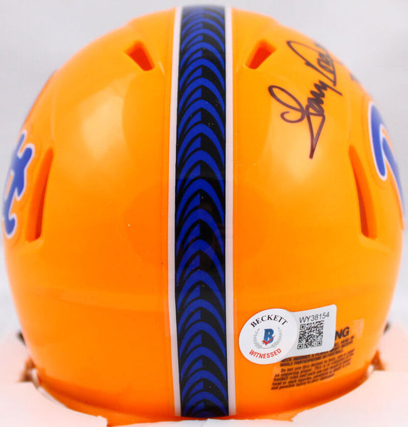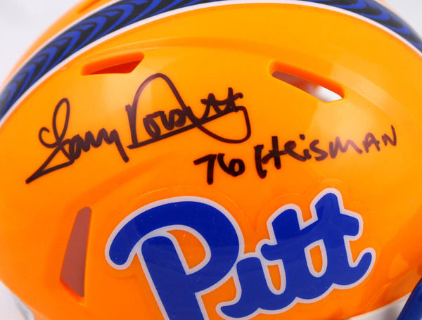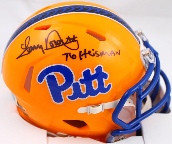 Tony Dorsett Autographed Pittsburgh Panthers Speed Mini Helmet w/76 Heisman-Beckett W Hologram *Black This is a hand autographed of Tony Dorsett on a Pittsburgh Panthers Riddell Speed Mini Helmet. It has been inscribed with '76 Heisman. This item has a Beckett Witnessed Authentication, which comes with a numbered sticker hologram and a QR code for verification. You can view this item on the Beckett Authentication website and it shows when and where the item was signed. It was signed either at a public autograph appearance or a private signing. This is a stock photo of the item. Although you may not receive this exact item, the item you receive is virtually identical and brand new in great shape.