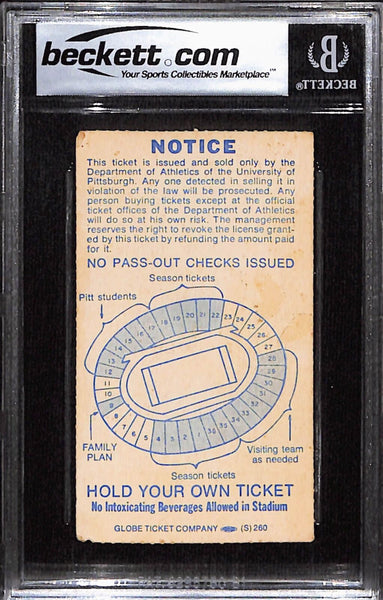 Tony Dorsett Signed Pittsburgh Panthers Ticket 11/06/76 Heisman Beckett 40973 The number in the listing title is just an inventory sku for our records and is not the authentication number. The item pictured is a the exact item you will receive, please see photos for condition. This is a Pittsburgh Panthers Slabbed Ticket Stub 11/06/76 that was personally autographed by Tony Dorsett with "Heisman 76" inscription. Includes a certificate of authenticity from Beckett Authentication Services (BAS) and Denver Autographs.