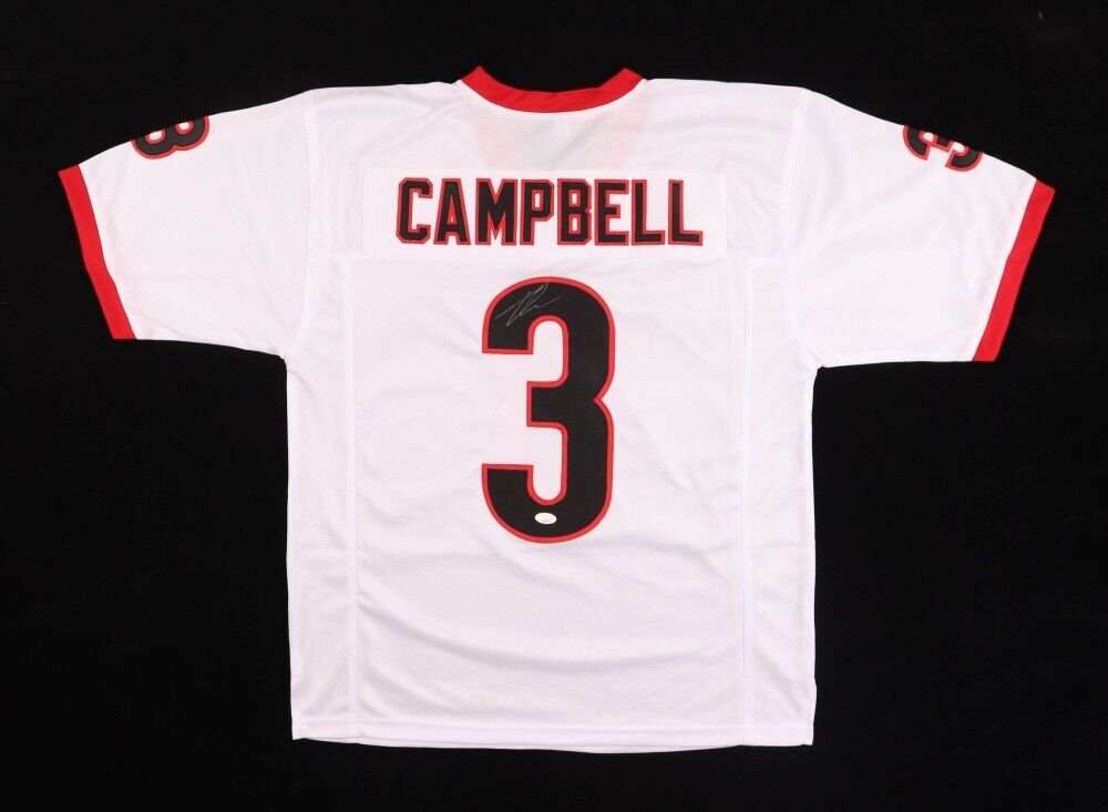 Custom on-field style jersey. Everything is sewn on, size XL. Hand-signed by Tyson Campbell.The autograph includes an official James Spence Authentication (JSA) hologram and matching COA for authenticity purposes. The signing of this item was witnessed by JSA.Authentication: JSA COA