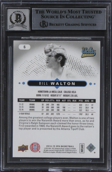 This Autographed 1997 Upper Deck #422 Card has been Personally Signed by Bill Walton of the UCLA Bruins. This item is 100% Authentic, it comes slabbed and authenticated by Beckett Authentication Services. The authenticity can be verified on Beckett Authentication Services website.
