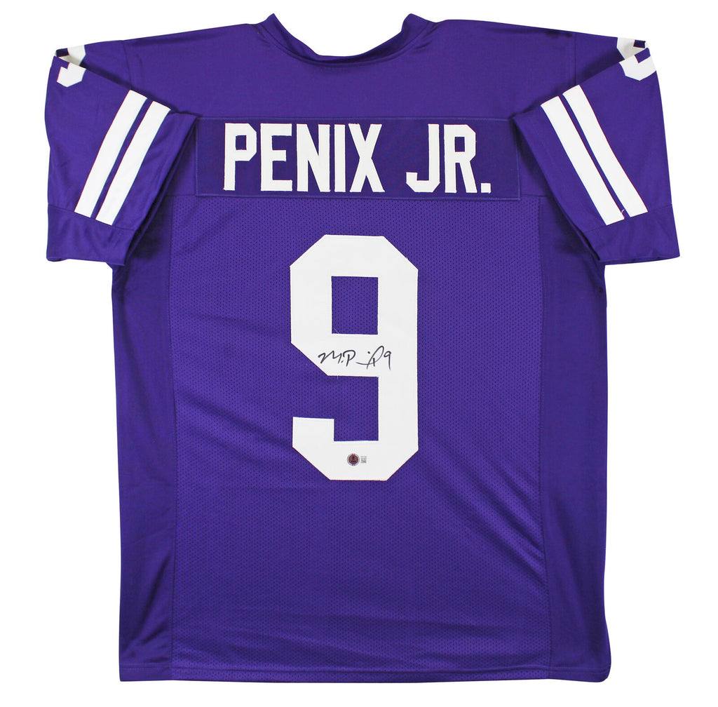 This Autographed Purple Pro Style Jersey has been Personally Signed by Michael Penix Jr. of the Washington Huskies. This item is 100% Authentic to include a hologram by Beckett Authentication Services. This item will come with an affixed Beckett Authentication Services (BAS) authentication sticker, which includes a scannable QR code to verify authenticity. Please note that Beckett no longer provides serial-numbered COA cards, and the attached BAS sticker will serve as the complete authentication for this item. This is a BAS Witnessed Protection Program item which means a Beckett Authentication Service representative was present when this item was being signed. We conducted an autograph signing with Michael Penix Jr. where multiples of the same item were signed. While the photographs are representative of this item, the size, placement and strength of the signature may vary. Each item is hand signed, therefore, each autograph is unique. This item can be verified through BAS Witnessed. This is a X-Large sized, non-branded, custom-stitched Jersey.