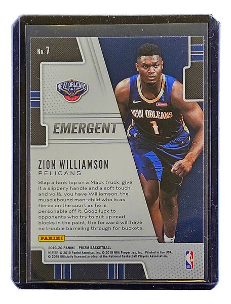Featured is a Zion Williamson 2019 Panini Prizm Emergent #7 Rookie Card. This trading card would make a great addition to any sports memorabilia collection!. SPECIFICATIONS Autographed By: Team: New Orleans Pelicans Sport: Basketball-NCAA Authentication: Beckett Grading Services