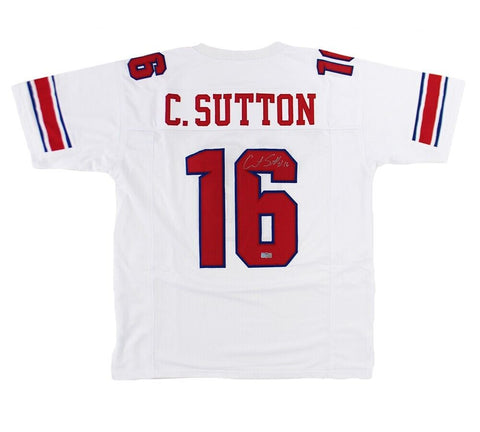 ERIC DICKERSON AUTOGRAPHED SMU MUSTANGS WHITE FULL SIZE HELMET W/ PONY EXPRESS