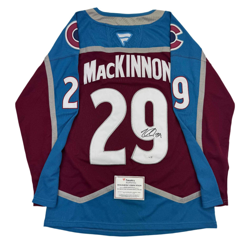 Autographed/Signed Nathan MacKinnon Avalanche Maroon Jersey Fanatics COA Jersey has no brand names or logos. This is a custom jersey and was not manufactured by or in any manner associated with any professional sports league or manufacturer. This custom jersey carries no professional sports league designation. The item is intended to be an autographed collectible. The custom jersey displays the name and number of the player. This item in no way is affiliated with or connected to any professional sports organization. Size is XL.