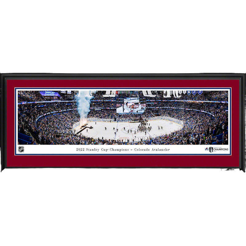 This is a panoramic photo taken during the celebration of the Colorado Avalanche winning the 2022 Stanley Cup, this photo comes with deluxe matting and framing. This photo captures the Avalanche players celebrating their first Stanley Cup in 21 years and 3rd in franchise history. This piece measures 18x43.5
