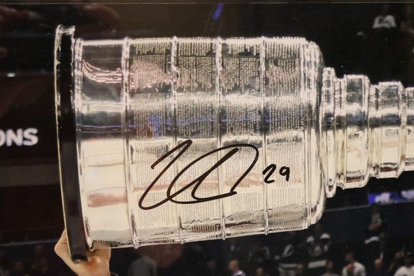 This is an incredible 16x20 photo of Nathan Mackinnon autographed in 3D and framed. The photo is an original and comes with a Fanatics Authentic COA. It features Nathan Mackinnon, a talented hockey player from the Colorado Avalanche team. The signature is clear and authentic, making it a valuable addition to any collection. This product is perfect for fans of hockey and Nathan Mackinnon. It is a unique item that will be treasured for years to come. The 3D framing adds an extra touch of elegance and makes it a great way to display in any room. Get your hands on this amazing autographed photo today!