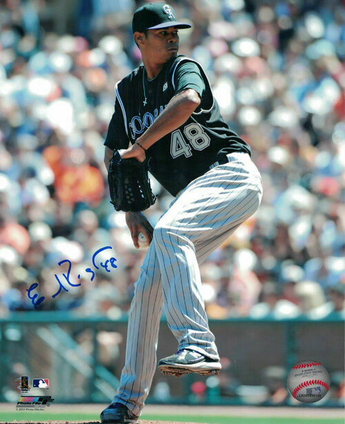 Esmil Rogers Autographed/Signed Colorado Rockies 8x10 Photo 12973 Colorado Rockies pitcher Esmil Rogers autographed officially licensed 8x10 photo. He was converted from shortstop to pitcher in 2006 the minor leagues and has progressed through the minors quickly. This was signed at our public signing on April 30, 2011 at our Colorado Mills store and includes a certificate of authenticity from Denver Autographs.