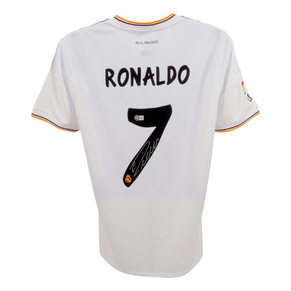 This is a Cristiano Ronaldo Signed Real Madrid Home Soccer Jersey #7 with Beckett COA. THE ITEM IN THE PICTURE IS A STOCK IMAGE. YOU WILL RECEIVE AN IDENTICAL ITEM OF EQUAL QUALITY. ALL JERSEYS ARE SIZE LARGE. Every item of signed memorabilia we sell is official and of the highest quality. We pride ourselves on providing sports fans with the most exclusive signed memorabilia on the market. We are an industry leading signed memorabilia company who can guarantee 100% authenticity on every signature we sell. The item you receive will be identical to the one you are seeing in the stock pictures. This includes the item, the authentication company, signature color and signature placement. We take pride in ensuring the authenticity of all our items. With unwavering commitment, we guarantee that every signature is 100% authentic. Every item of signed memorabilia comes with a scannable barcode which takes you to the certificate of authenticity on the company's website. These industry leading authentication companies include Beckett Authentication Services, James Spencer Authentication Services and Professional Sports Authentication Services.