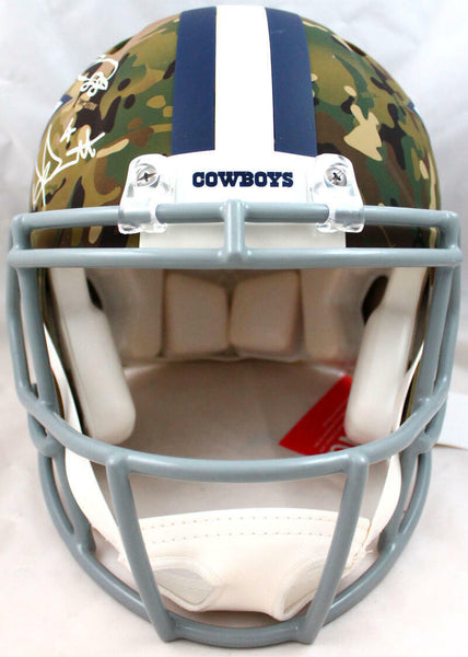 Lamb/Prescott/Elliott Signed Dallas Cowboys F/S Camo Speed Authentic Helmet-Fanatics/BAW Hologram This is a hand autograph of CeeDee Lamb/Ezekiel Elliott/Dak Prescott of the Dallas Cowboys on a Riddell Football Full Size Camo Speed Authentic Helmet. This item has a Fanatics/Beckett Authentication, which comes with a numbered sticker hologram and a QR code for verification. You can view this item on the Fanatics/Beckett Authentication website and it shows when and where the item was signed. It was signed either at a public autograph appearance or a private signing. This is a stock photo of the item. Although you may not receive this exact item, the item you receive is virtually identical and brand new in great shape.