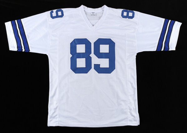 Custom on-field style jersey. Everything is sewn on, size XL. Hand-signed in black felt-tip pen by Blake Jarwin. This autograph is certified by James Spence Authentication's (JSA) Witnessed Protection Program. That means that a JSA representative was present when this item was signed. It comes with the numbered hologram and matching Certificate of Authenticity.Authentication: JSA COA
