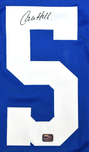 THIS IS NOT AN NFL JERSEY. THIS HAS NO TAGS, NO LOGOS, NO EMBLEMS. This is a hand autograph of Calvin Hill of the Dallas Cowboys on a Custom made (non-name brand) Authentic Style Jersey with stitched letters and numbers. This item has a Prova Authentication, which comes with a Prova numbered sticker hologram. You can view this item on the Prova Authentication website. It was signed either at a public autograph appearance or a private signing. This is a stock photo of the item. Although you may not receive this exact item, the item you receive is virtually identical and brand new in great shape. Jersey size is XL. THIS IS NOT AN NFL JERSEY. THIS HAS NO TAGS, NO LOGOS, NO EMBLEMS. This is a hand autograph of Calvin Hill of the Dallas Cowboys on a Custom made (non-name brand) Authentic Style Jersey with stitched letters and numbers. This item has a Prova Authentication, which comes with a Prova numbered sticker hologram. You can view this item on the Prova Authentication website. It was signed either at a public autograph appearance or a private signing. This is a stock photo of the item. Although you may not receive this exact item, the item you receive is virtually identical and brand new in great shape. Jersey size is XL.