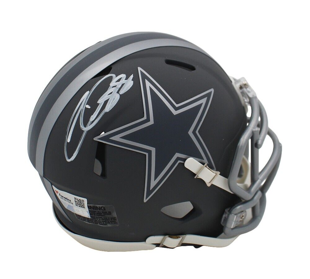 A Dallas Cowboys Speed Slate NFL Mini Helmet hand signed by CeeDee Lamb. The item and signature are in excellent condition. CeeDee was drafted into the NFL in 2020. He is a Pro Bowler, a Consensus All-American, and 2019 Big 12 Championship Game MVP. AUTHENTICATION: The item is accompanied by a Fanatics Authentic Serial Numbered and Databased Hologram