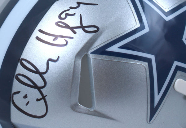 This is a Charles Haley of the Dallas Cowboys hand autographed Riddell Football Speed Mini Helmet. It has a Beckett Witnessed Authentication, which comes with a numbered hologram and a QR code for verification. You can view this item on the Beckett Authentication website and it shows when and where the item was signed. It was signed either at a public autograph appearance or a private signing. This is a stock photo of the item. Although you may not receive this exact item, the item you receive is virtually identical, brand new, and in great shape. This is a Charles Haley of the Dallas Cowboys hand autographed Riddell Football Speed Mini Helmet. It has a Beckett Witnessed Authentication, which comes with a numbered hologram and a QR code for verification. You can view this item on the Beckett Authentication website and it shows when and where the item was signed. It was signed either at a public autograph appearance or a private signing. This is a stock photo of the item. Although you may not receive this exact item, the item you receive is virtually identical, brand new, and in great shape.