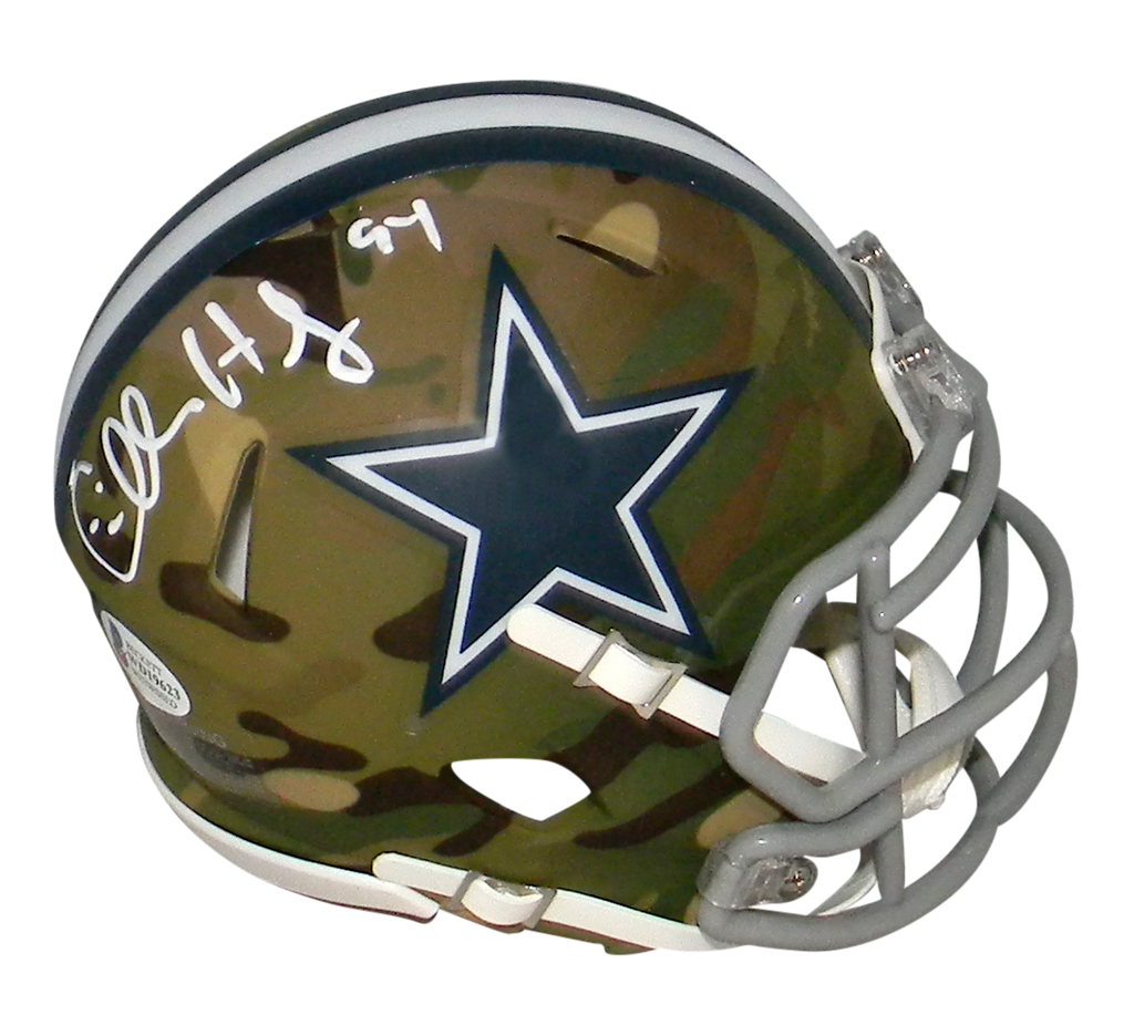 Charles Haley, former Hall of Fame defensive end for the Dallas Cowboys, has hand signed this Cowboys Riddell Speed Camo mini helmet at a private signing. This item comes with a certificate of authenticity (COA) from Beckett Authentication Services and was signed in the presence of one of their representatives. You will receive a serial-numbered COA along with a matching serial-numbered sticker on the helmet. The authenticity can be verified online by entering the serial number.Item pictured may not be the exact item you will receive. It will be similar quality, and we guarantee your satisfaction.