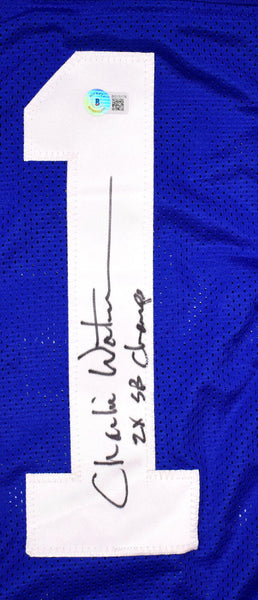 Charlie Waters Autographed Blue Pro Style Jersey w/2x SB Champs- Beckett Holo