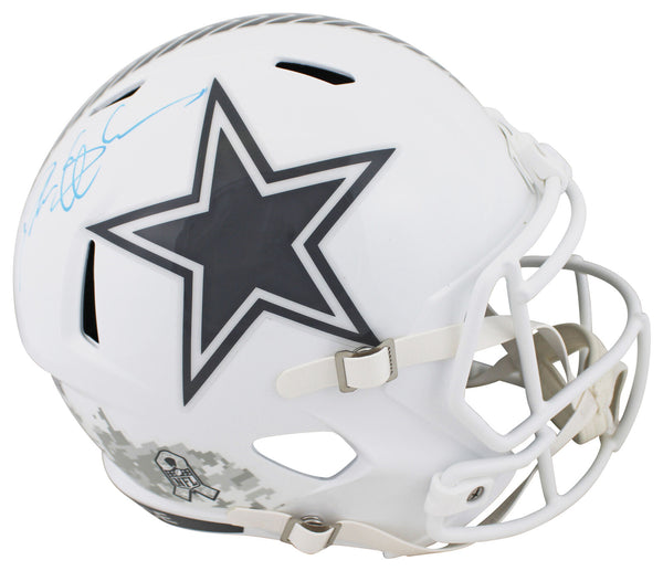 This Autographed Alternate 2024 Salute To Service III Riddell Full Size Speed Rep Helmet W/ Uv Mirrored Back Acrylic Display Case has been Personally Signed by Deion Sanders of the Dallas Cowboys. This item is 100% Authentic to include a hologram by Beckett Authentication Services. This item will come with an affixed Beckett Authentication Services (BAS) authentication sticker, which includes a scannable QR code to verify authenticity. Please note that Beckett no longer provides serial-numbered COA cards, and the attached BAS sticker will serve as the complete authentication for this item. This is a BAS Witnessed Protection Program item which means a Beckett Authentication Service representative was present when this item was being signed. We conducted an autograph signing with Deion Sanders where multiples of the same item were signed. While the photographs are representative of this item, the size, placement and strength of the signature may vary. Each item is hand signed, therefore, each autograph is unique. This item can be verified through BAS Witnessed.