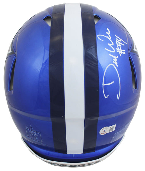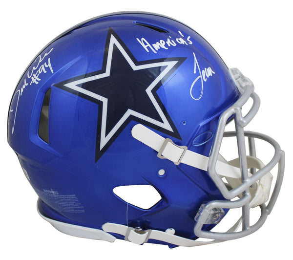 This Autographed Alternate Flash Riddell Authentic Full Size Speed Proline Helmet with the inscription of "America's Team" has been Personally Signed by DeMarcus Ware of the Dallas Cowboys. This item is 100% Authentic to include a hologram by Beckett Authentication Services. This item may come with the new Beckett Authentication hologram that has a scannable QR code rather than the traditional COA. If you would like to have a COA, you are welcome to reach out to Beckett for a printed certification once you receive your item. This is a BAS Witnessed Protection Program item which means a Beckett Authentication Service representative was present when this item was being signed. We conducted an autograph signing with DeMarcus Ware where multiples of the same item were signed. While the photographs are representative of this item, the size, placement and strength of the signature may vary. Each item is hand signed, therefore, each autograph is unique. This item can be verified through BAS Witnessed.